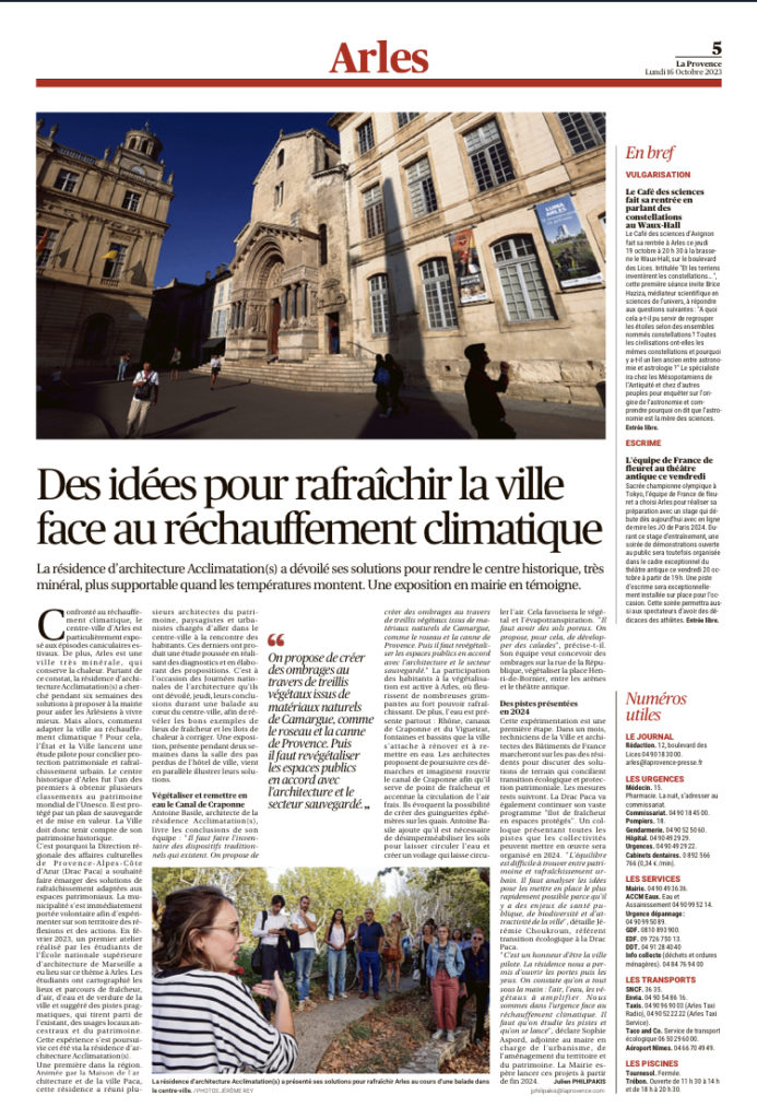 Acclimatation(s) – Résidence fraicheur Arles (13) 2023